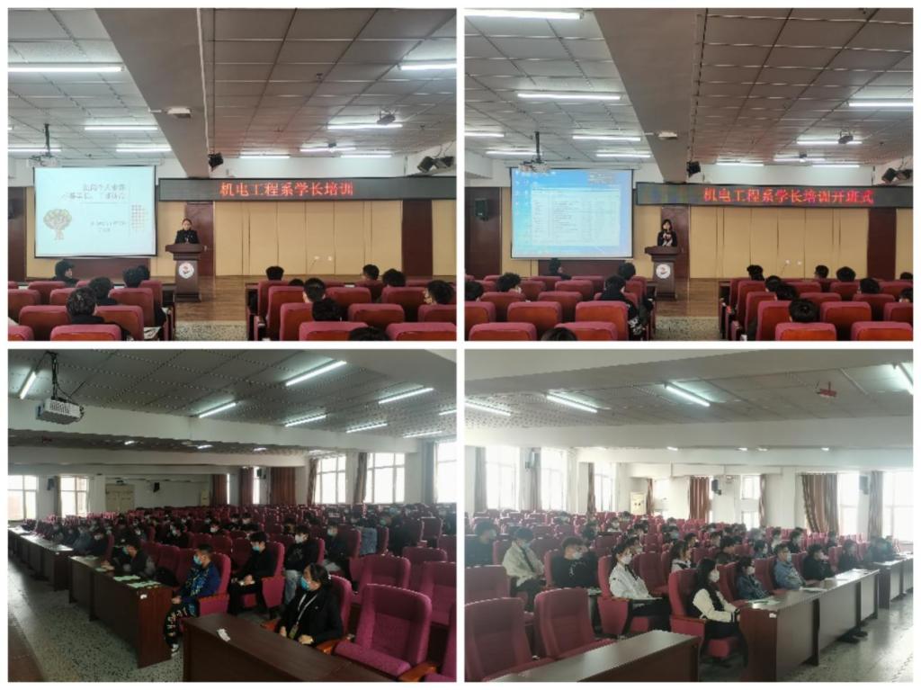 为深入开展学生工作,增强学长工作能力,培养一批优秀学长,4月21日中午机电工程系在图书馆501召开了学长培训班开班仪式,机电工程系党总支书记、学生工作副主任王丽萍老师进行了第一次培训,全体预选学长参加。