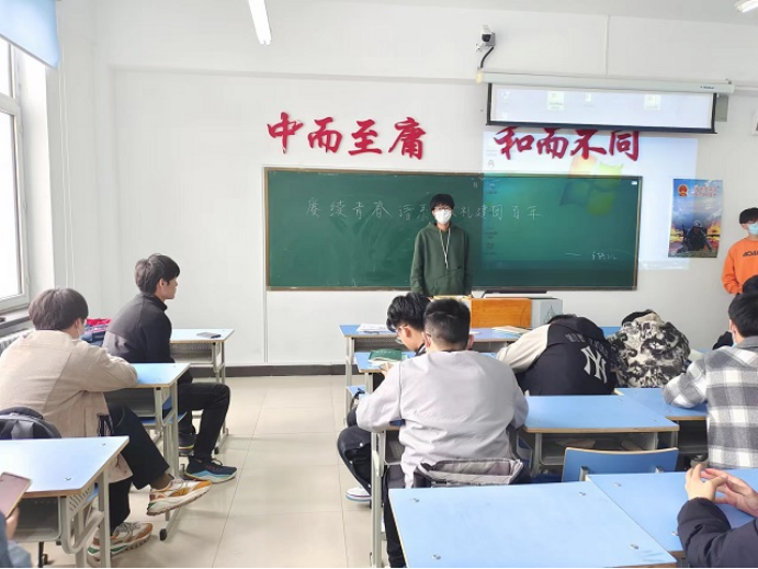 爱国主义是民族精神的内核,是我们中华民族赓续千年、融于血肉的民族“坐标”。为献礼建团百年华诞,于2022年4月26日早,车辆212班于图书馆429教室开展“赓续青春谱系,献礼建团百年”主题团日活动。车辆212班全体学生参加此次活动,活动由团支书霍冬麒主持。