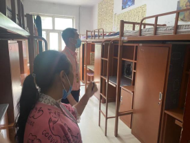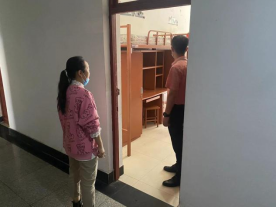 6月15日下午,学校党委书记郭伟东与机电系学生工作副主任王丽萍一同深入到五公寓走访学生寝室。