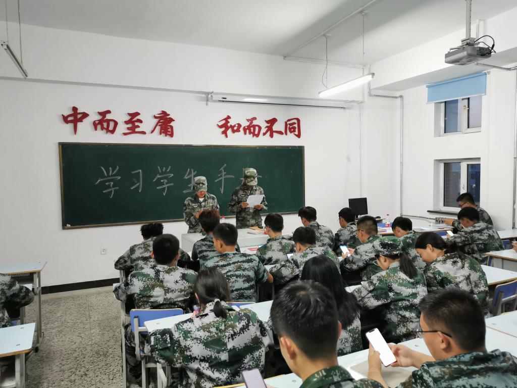 9月5日在学长辅导员的带领下,192班的同学们共同学习了学生手册,德育分制度,使学生明白了我校的德育分制度及扣分原则。我校德育分扣除制度类似于驾照扣分制度,同样采取每年十二分的扣除方法,但不同的是,我校学生如果扣满六分,便会取消获得奖学金,成为班级干部等一系列优等生待遇。在新生军训开始的第二天,每一个学生的脸上都献出了一丝疲惫,初来乍到,每个人都有一些不不习惯。于是学长教官组织大家团歌教唱,在教官教唱团歌的过程中,发现每个学生脸上的那一丝疲惫都不见了,每个人都跟随着教官唱出的团歌唱了起来,每一名跟随哼唱学生们的脸,一定是今天齐工程最美的一处风景。9月5日中午,党员学长安东为大一新生科学、有序的讲解了入党所需要走的过程与所需要达到的能力,使学生对入党有了一个全面,透彻的了解。安东学长先从我们入党前所必须要有的三好:学习好,人品好,工作好。再到入党所要经历的过程与需要达到的要求,一直到现在要如何做,十分透彻的讲解了入党程序,驱散了大一新生在入党程序上的迷茫,指引着同学们达成入党的梦想。