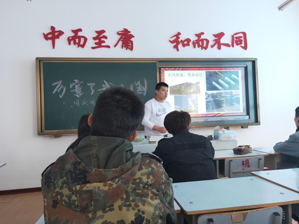 在本次活动中,来自健康与护理系的刘禄同学详细的为同学们介绍了在新中国国庆70周年阅兵上展示的一系列武器装备。刘禄同学从长剑100巡航导弹开始,逐件地对各种新式武器进行了介绍。感慨祖国的强大,细节的到位,环保意识的先进。社长赵宣铭对刘禄同学没有介绍的国产全新ztq-15式轻型坦克做了补充介绍。