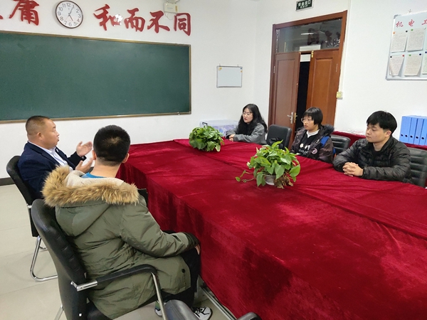 参加本次会议的是学长助学社团社长安东,系学生会学习部长王昕红等四名助学社团学生干部。孙老师为他们讲解了如何更好的助力学生学习。孙老师强调,举办社团活动,不是为了搞活动而搞活动,而是要切实以助力学生学习的初心来创办社团活动。孙老师指出了几处之前社团活动中的不足,并以此为诫提醒学长们,介绍学习方法要注意实用性,资料收集、讲座技巧、举办会议等从开始到结束的细节都要严格要求。最后,孙老师指出创建社团要用心,并例举曾经自己的社团生活,告诉社团干部要明白自己应该做什么,要切实为学生助学教育付出,推进我校学生综合学习能力提升,为社会培养优秀的德智体美劳全面发展的人才。社长安东最后进行了总结,并指出下一次的社团活动要求。