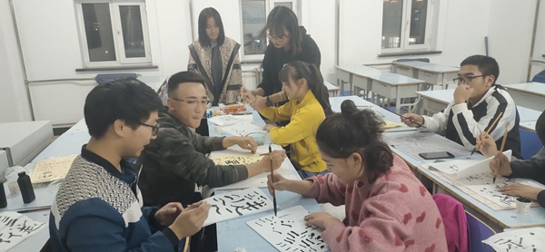 通过此次毛笔书法活动的开展,纠正了个别同学在毛笔书法书写方法的疑惑,让各位同学就各自的毛笔书法发展做出未来规划。协会会长赵玉芳就各位同学的作品做出点评,书法学习一定要有耐心,万事也都需要耐心……等,在现场的同学也认真记住了毛笔书法的要领。