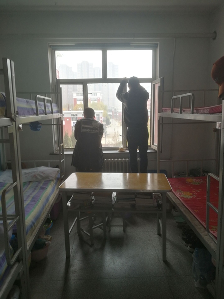 最近天气变冷,气温骤降,为了解决机电系女生公寓的保暖问题,10月28日,电气专业学生党支部书记、辅导员、五公寓社区指导老师王连俊及辅导员白士元老师带领五公寓社区管理委员会5名学生干部以及5名男同学到学院1、2、3、12女生公寓了解她们的寝室保暖情况,并帮助她们贴窗户密封封条,给同学们带去了学院的关怀。