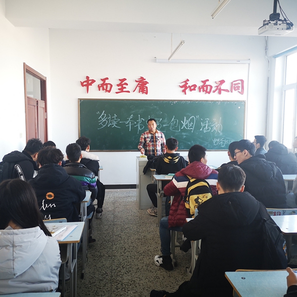 吸烟有害健康是众所周知的事情,而现在大学生已经成为吸烟人群的主要“生力军”。为了警醒吸烟的同学,11月11日,王连俊老师于图书馆543为同学们举办了一场“多读一本书,少吸一包烟”的主题班会。