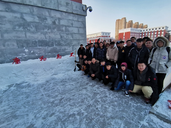 最近,齐齐哈尔市迎来了2019年的第一场大雪,雪很厚,给校园的师生出行带来了极大的困难。为了恢复校园的干净整洁的风貌,电气本191全体男生在辅导员徐飞老师和生活委员罗伟东同学的带领下前往分担区域进行清雪任务。零下十几度的天气,同学们的手都拿不出来,让很多第一次来到北方的南方同学感受到了齐齐哈尔冬天的寒冷。但是寒冷的冬天丝毫没有抵挡住同学们劳动的热情,没有一个人叫苦、叫冷,每一个同学都在热火朝天的干着,在大家的努力下,雪打扫的十分干净,并且将雪堆修缮的十分工整。