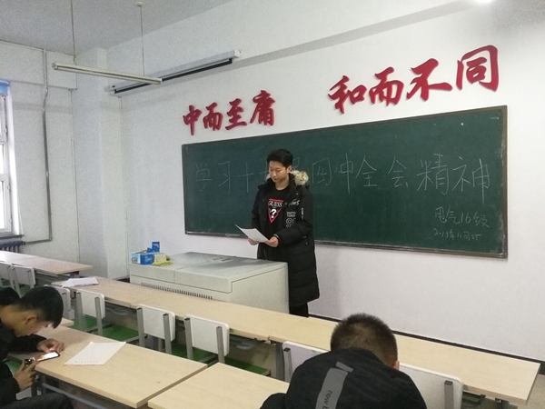 11月26日上午7点,电气本161班在图书馆113教室召开“学习十九届四中全会精神,砥砺奋进新时代”主题班会,此次会议由导员白士元老师负责,电气16级同学参加此次会议。