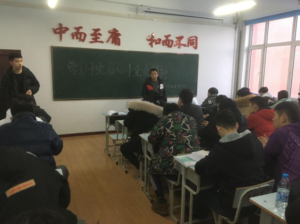 党的十九届四中全会的召开,在高校师生中引起热烈反响,11月26日,为使同学们学深悟透全会精神,把思想和行动统一到全会精神上来,推动全会精神落到实处、取得实效。电气本181班于图书馆416开展了“学习十九届四中全会精神”主题班会。此次主题班会由电气专业辅导员王连俊老师为大家主持召开。他告诉同学们要坚持以习近平新时代中国特色社会主义思想为指导,深入学习贯彻党的十九届四中全会精神,坚守初心、勇担使命。