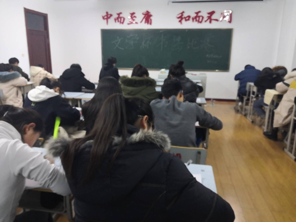 为了检测同学们书法的练习成果,11月26日文学书法协会在图书馆408开展了书法比赛活动,主要是对硬笔和软笔的书写进行笔试。