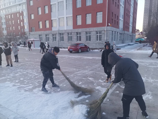 齐市的第三场雪悄然而至,为保持校园环境,并让同学们在校园里行走时更加安全,11月27日上午7点机械本191班生活委员刘宏博带领全班同学在图书馆后面西侧道从道路中间到最西侧进行了学院扫雪活动。