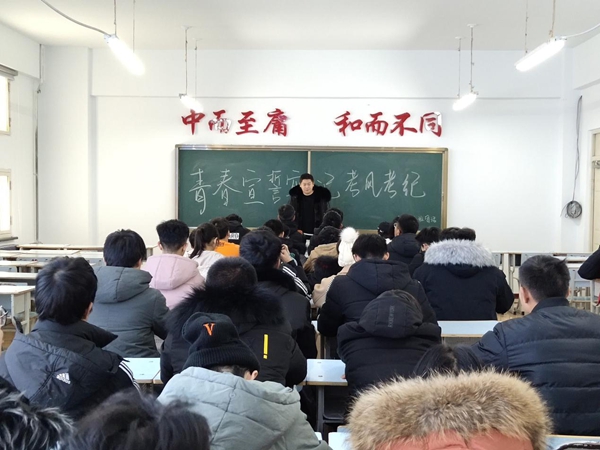 期末降至,为了端正学习风气,强调考场纪律,增强诚信意识,机械本192班12月3日下午2:20于图书馆414召开了牢记考风考纪、青春宣誓团活,加深了同学们对诚信考试的理解,提高对考风考纪的重视。