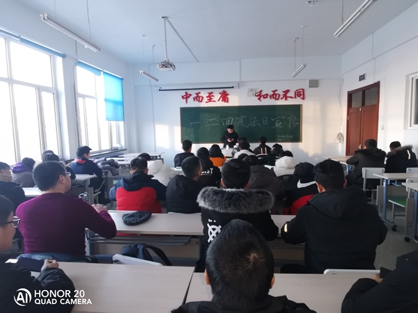 为响应国家号召,提升同学们的法制意识,机械本194班12月4日在图书馆414展开12.4宪法日主题团活。