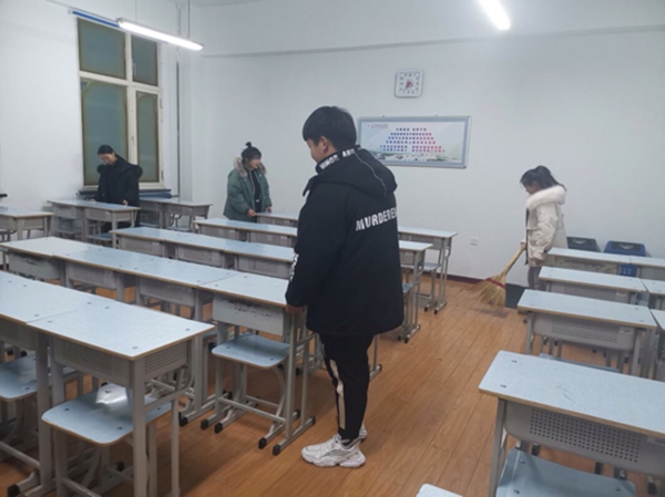 寒风凛冽的夜晚,同学们都在安静地上晚自习,学生会主席王昕红召集各部门部分成员12月6日对图书馆的相关教室进行彻底打扫工作,在各部长的带领下大家来到自己负责的相应教室进行劳动。
