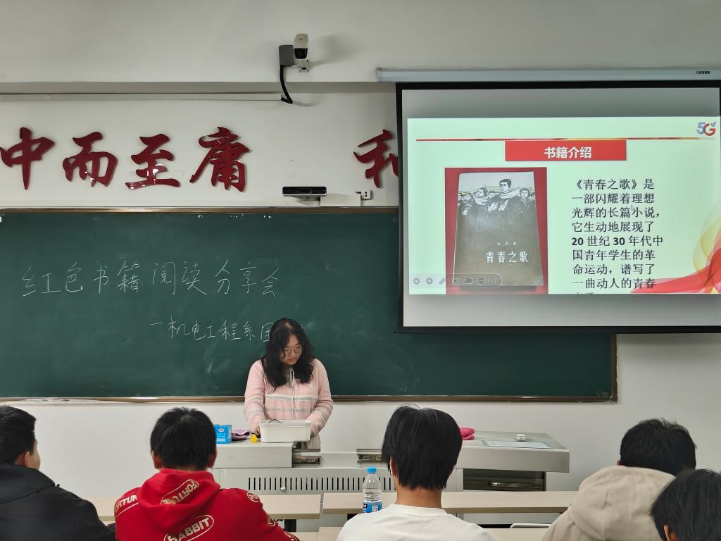为深入学习习近平新时代中国特色社会主义思想,激发爱党爱国情怀,学习积极奋斗精神,促进学生们之间的学习交流,机电工程系团总支于2025年10月13日晚在图书馆110组织开展“阅读红色经典,坚定理想信念“红色书籍分享会活动。