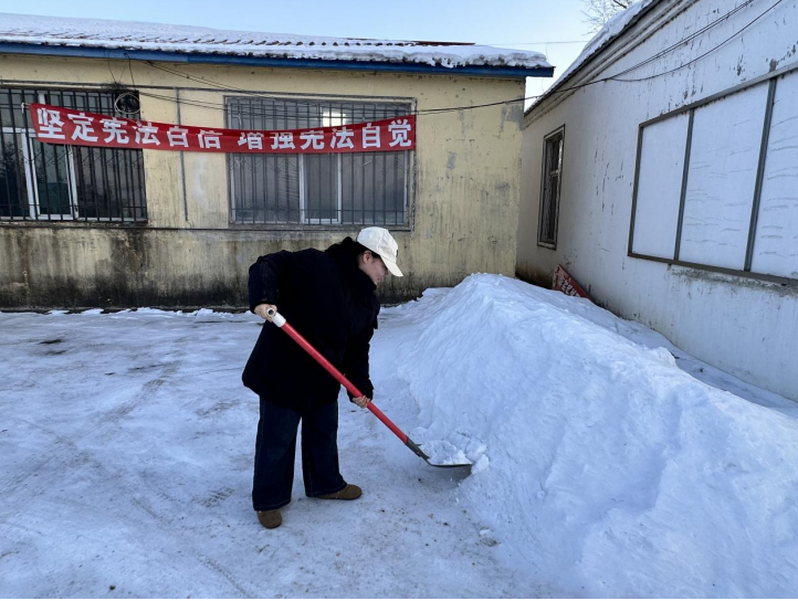 活动中,李美萱拿着铁锹,除雪板等清雪工具,对院子里上被人们踩压结实的积雪残冰进行一点点地清除,把它堆积到路边,清理出一条干净的路面。她们不畏严寒,团结协作,干劲十足,忙碌的身影成为冬日里一道最美丽的风景线。经过志愿者们一个多小时的奋战,人行道上的积雪残冰得到了全面清除,为群众的出行提供了安全保障,受到了群众一致赞誉。推动全社会形成爱国爱家、相亲相爱、向上向善、共建共享社会主义文明新风尚。