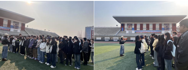 4 月 27 日,校园里朝气蓬勃。为迎接即将到来的审核评估,辅导员老师王虹在早操时间组织学生召开文明教育会议,为营造良好校园氛围、展现学子精神风貌敲响 “文明警钟”。