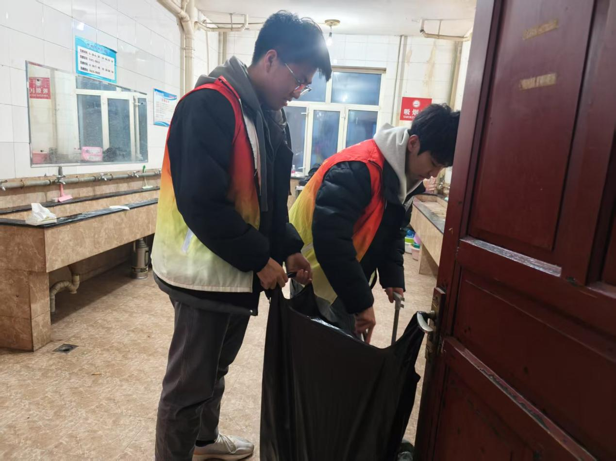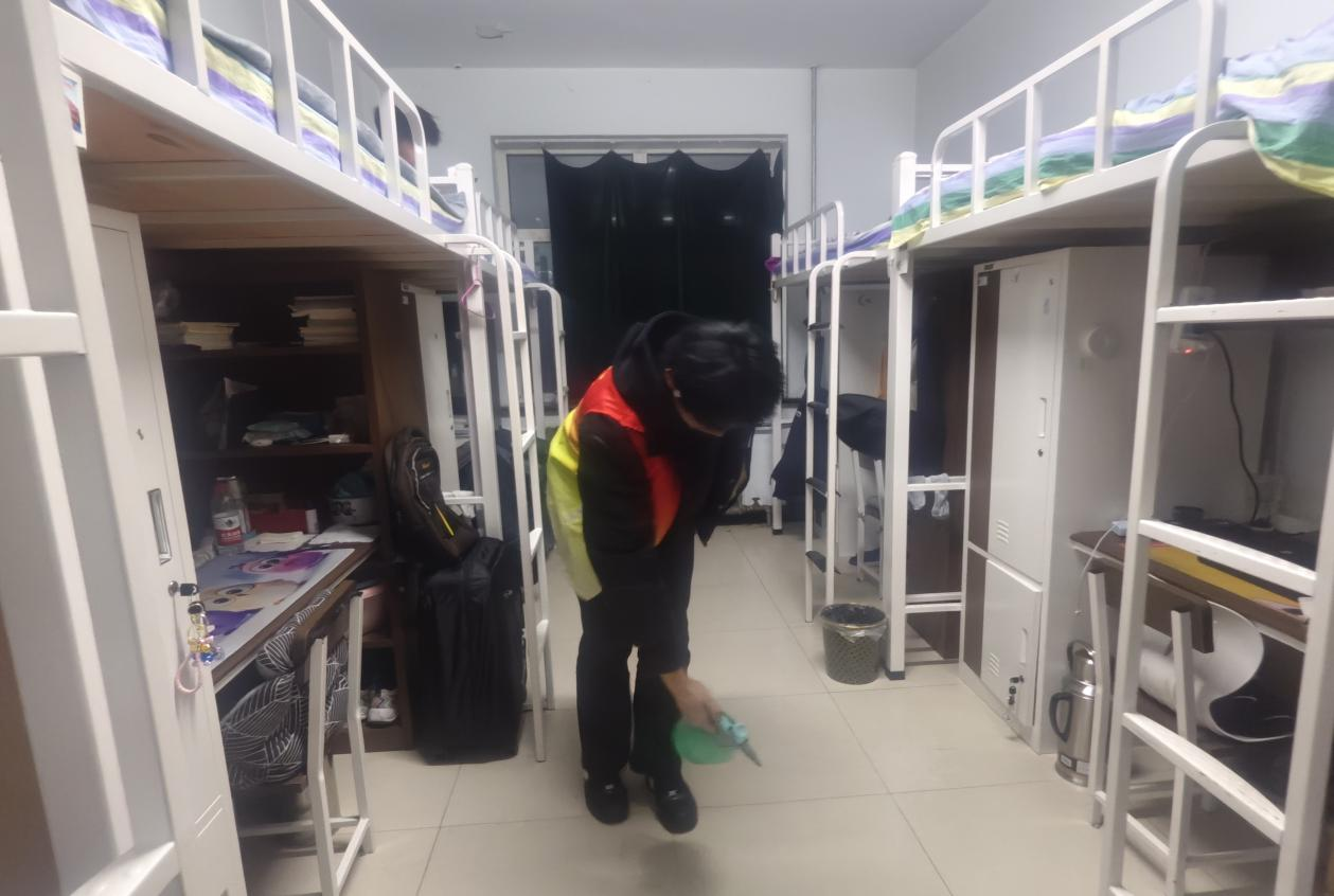 活动当日,大家领取清洁工具后迅速投入工作。分工明确,有条不紊。有的同学负责清扫地面,从走廊到楼梯,每一个角落都不放过,将灰尘与杂物彻底清除;有的同学专注于擦拭门窗,让玻璃重新焕发出明亮的光彩;还有的同学对公共区域的扶手、栏杆进行细致消毒,为同学们的健康保驾护航。在清理过程中,大家不怕脏、不怕累,充分展现了团结协作的精神。