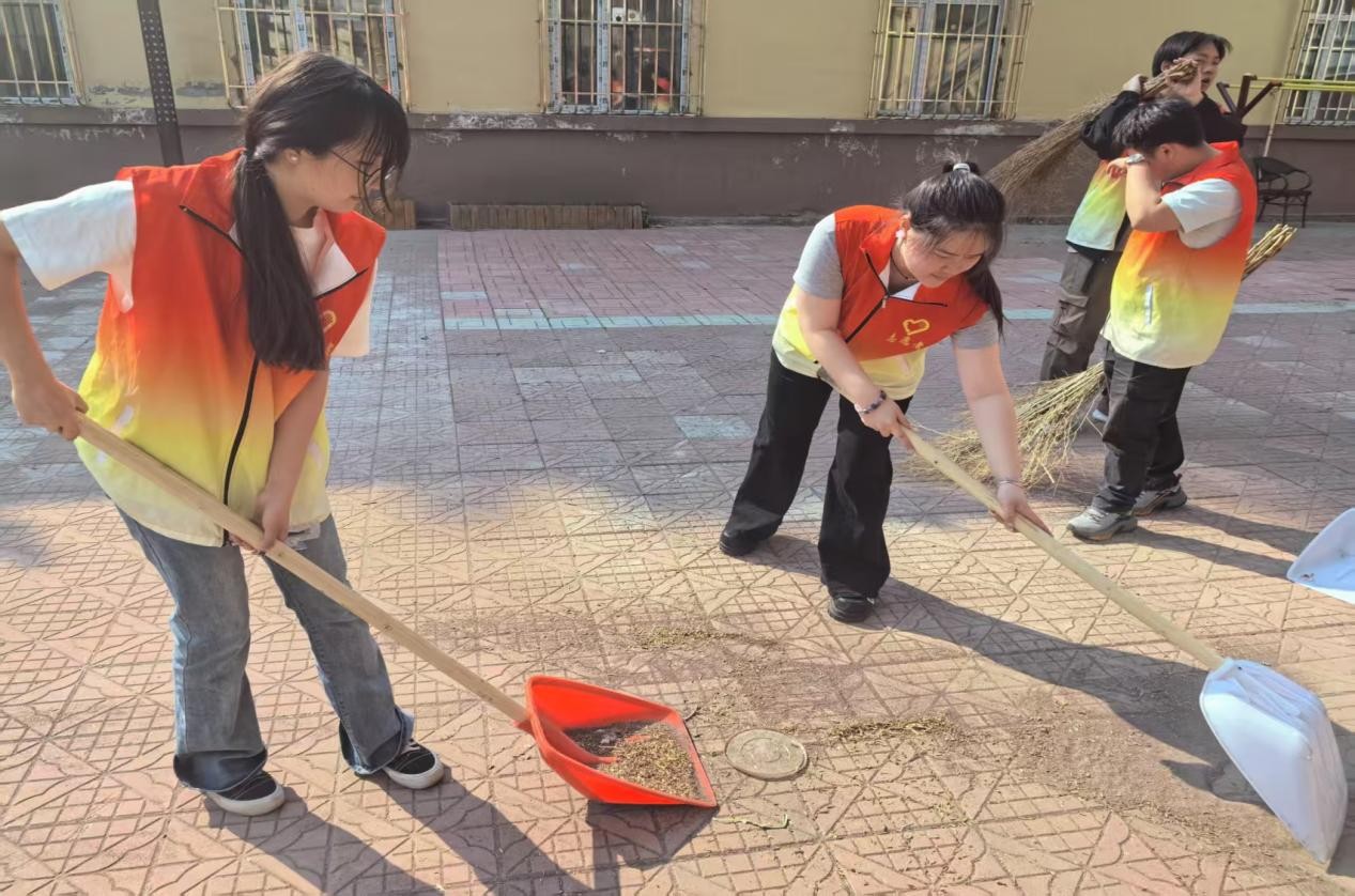 在社区的公共活动区域,几位志愿者手持扫帚,正专注地清扫地面。他们不放过任何一个角落,仔细地将落叶、烟头、纸屑等垃圾一一扫起,装进垃圾袋。尽管额头上沁出细密的汗珠,后背也被汗水浸湿,但他们的动作没有丝毫懈怠。在清扫健身器材周边时,他们还不忘将器材上的灰尘擦拭干净,确保居民能有一个干净、舒适的健身环境。完成基础的清扫和土地翻整工作后,志愿者还走进社区居民中间,与他们唠家常,大家围坐在一起,分享着生活中的趣事。在轻松愉快的氛围中,居民们对这些年轻的志愿者竖起大拇指,直夸他们有活力、肯实干。