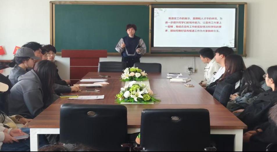 培训中,吕嵩岩老师围绕宣传报道展开系统授课。她先是点明宣传报道工作的重要意义,强调其是学院工作呈现的窗口,能实现“下情上传”,还对个人文字能力锻炼大有益处。接着,重点阐释学院对宣传报道的规范要求,从来源、作者、摄影等信息的精准标注,到时间、地点、人物的清晰表述,再到内容与意义的完整呈现,都讲解得细致入微。同时,明确格式规范为五号字、宋体、首行缩进、两倍行距,以及照片要清晰且置于稿件上方等要求。讲解过程中,吕嵩岩老师结合实际案例,深入浅出,让学长们更好理解吸收。