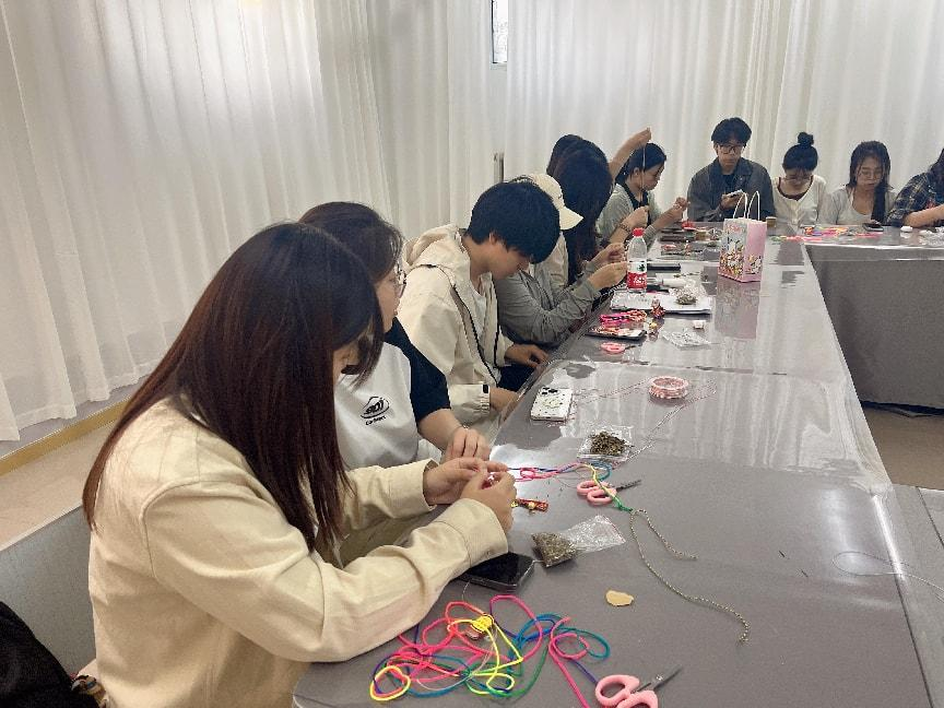 在陈老师讲解完毕后,手工制作环节正式开始。同学们纷纷挑选自己心仪的材料,迫不及待地投入到端午节挂件的制作中。大家或是独自专注创作,或是与身旁的同学相互交流、互相帮助。现场,五彩的丝线在同学们的指尖穿梭,各种形状的挂件逐渐成型。不一会儿,一个个精美的端午节挂件便摆满了桌面,每一个挂件都凝聚着同学们的巧思与对传统文化的热爱。