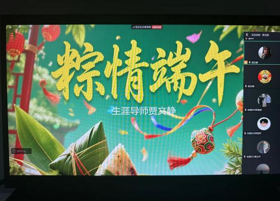 5月28日,生涯导师贾文静借着端午来临之际在腾讯会议带领全体生涯学生共度端午,会上讲述了端午节包粽子、赛龙舟等传统习俗背后的历史渊源,带领大家在欢乐互动中领略端午文化的深厚底蕴,同时以古鉴今,引导学生感悟传统文化中的拼搏精神与家国情怀。