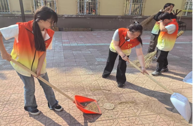 在社区的公共活动区域,几位志愿者手持扫帚,正专注地清扫地面。他们不放过任何一个角落,仔细地将落叶、烟头、纸屑等垃圾一一扫起,装进垃圾袋。尽管额头上沁出细密的汗珠,后背也被汗水浸湿,但他们的动作没有丝毫懈怠。在清扫健身器材周边时,他们还不忘将器材上的灰尘擦拭干净,确保居民能有一个干净、舒适的健身环境。完成基础的清扫和土地翻整工作后,志愿者还走进社区居民中间,与他们唠家常,大家围坐在一起,分享着生活中的趣事。在轻松愉快的氛围中,居民们对这些年轻的志愿者竖起大拇指,直夸他们有活力、肯实干。