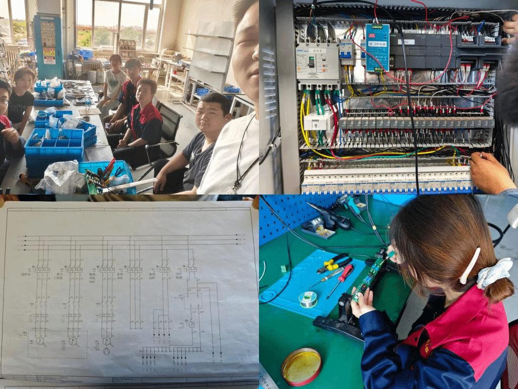 为了让同学们更好地掌握知识,老师傅还安排了三天的实践环节。同学们分组对照图纸,在模拟设备上进行线路连接。又进行了电路板的简单焊接过程中,老师傅耐心指导,及时纠正他们在识图接线和焊接中出现的错误。通过理论与实践的结合,实习生们对电气图的识读应用和焊接技术有了更深刻的理解。