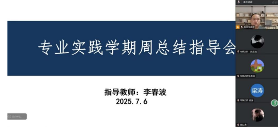 为保质保量完成专业实践学期各项任务,7月6日晚,指导教师李春波通过腾讯会议召开周总结指导会,所指导学生全员参加。