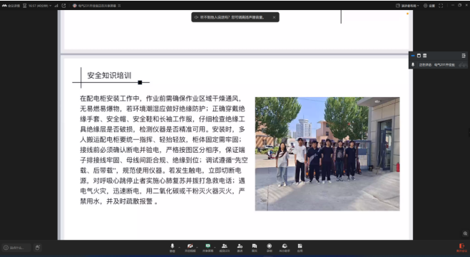 为进一步推动专业实践教学有序开展,7月5日晚上,电气工程专业潘帝池老师通过腾讯会议平台组织召开了专业实践学期第二周总结会。本次会议围绕实践进度、实习安全、问题反馈与经验交流等内容展开,旨在及时梳理阶段性成果,查找存在问题,优化后续安排,强化实践效果。