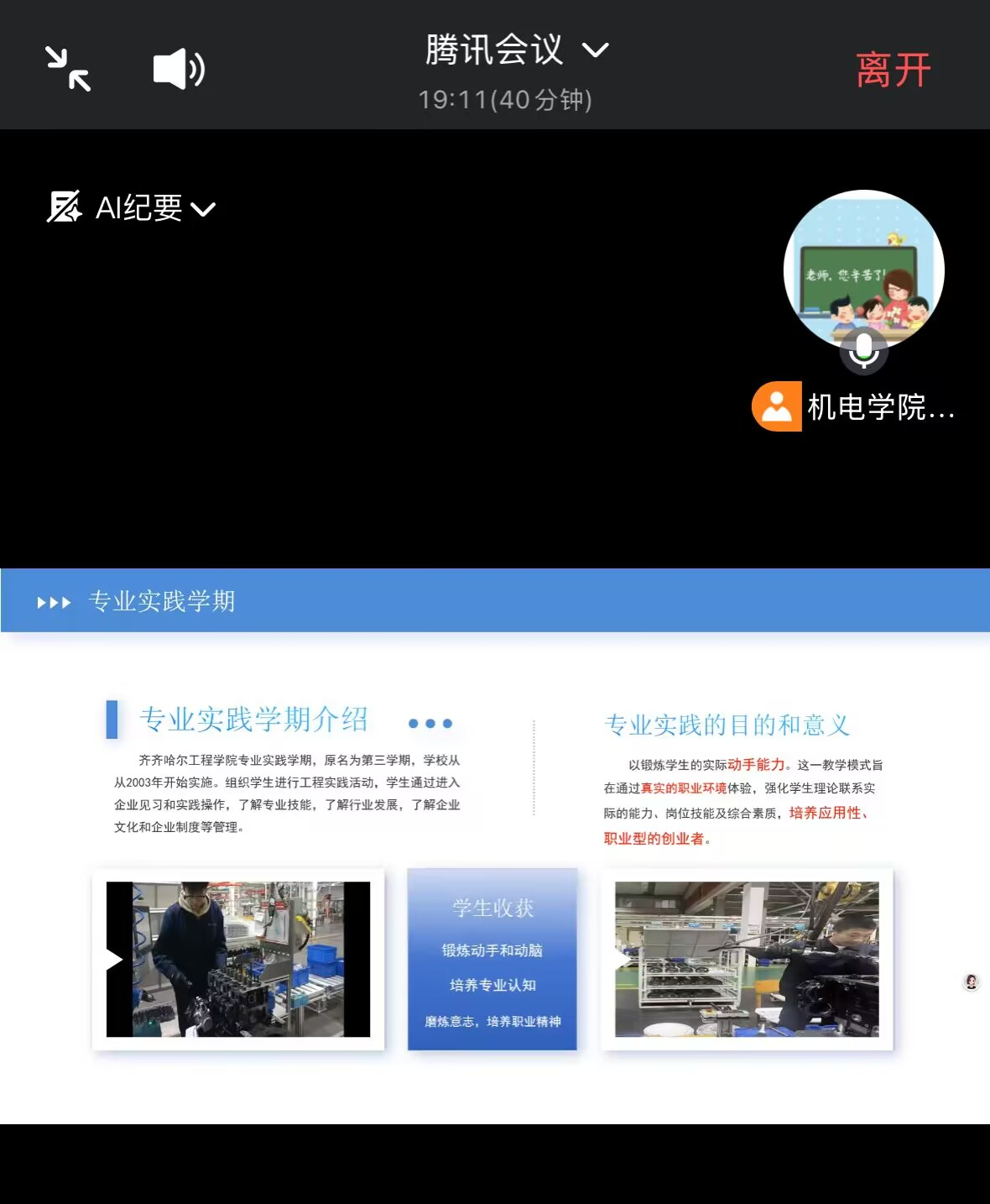 此次班会,让家长全面的了解了学生在校的学习情况。通过沟通,让家长理解学校的专业实践学期的教育理念、培养目标。同时,提升了教育实效,助力学生们的全面发展,促进其综合素质提升。