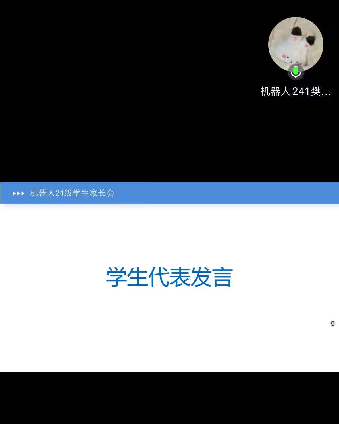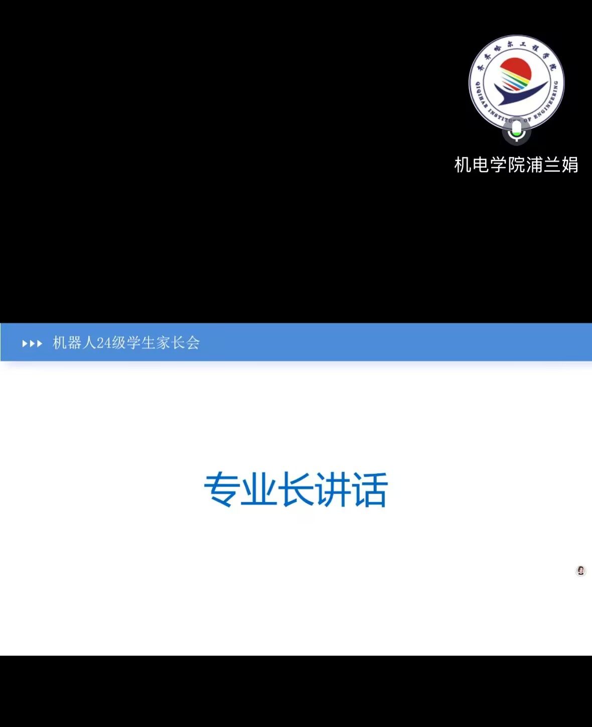 为了向家长全面反馈学生在校的学习状态、生活表现等,让家长及时了解学生在校园的真实情况,针对学生们可能存在的学习困难、心理压力等问题,并介绍专业实践学期的教学安排及管理规定,辅导员张勇于7月9日晚上19点在腾讯会议召开此次主题班会。本次会议的主持人是机器人24级团支书杨文雅,机器人24级家长、专业长、生涯导师和辅导员参与本次会议。