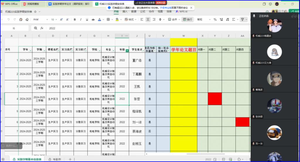 为了帮助学生更好地适应专业实践学期的实习生活,明确实习目标,提升实习质量,保证专业实践学期顺利进行,机械223班指导老师李玲老师于7月9日晚线上组织召开第二周生产实习总结会议。