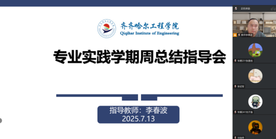 为保证专业实践学期顺利进行,指导教师李春波老师于7月13日晚,采用腾讯会议形式组织召开周总结指导会,所带全体学生参会。会议围绕实践安全与专业成长,通过多维环节助力学生提升实践能力。