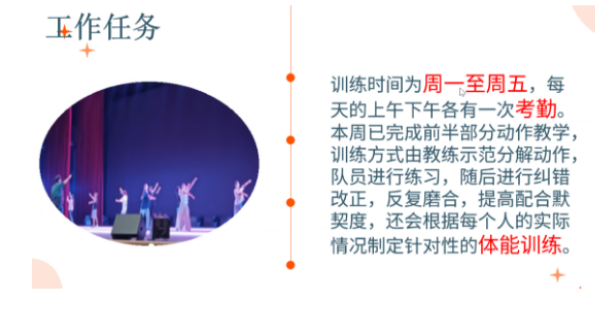 本次实践结果展示汇报,由西门子赛事备赛人员郭东承、舞蹈赛事备赛人员李红莹、微专业牟馨悦进行实践收获汇报。