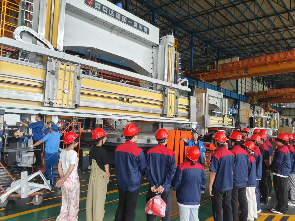 为深化劳动教育实践,弘扬工匠精神,7月16日上午,辅导员苏海龙带领20余名师生前往齐重数控装备股份有限公司开展“思想筑基计划——工匠讲堂”第十二期主题活动,实地参观学习,近距离感受现代装备制造的科技魅力。副部长郝杰全程陪同讲解,为参观团队带来了一场生动的"工业实践课"。