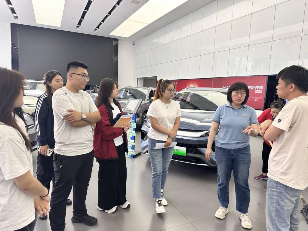 调研团队首先前往齐齐哈尔比亚迪4S店与行政经理丁懿旸交流,了解公司的用人需求以及工作岗位的知识、技能、态度标准及新能源汽车未来的发展趋势。