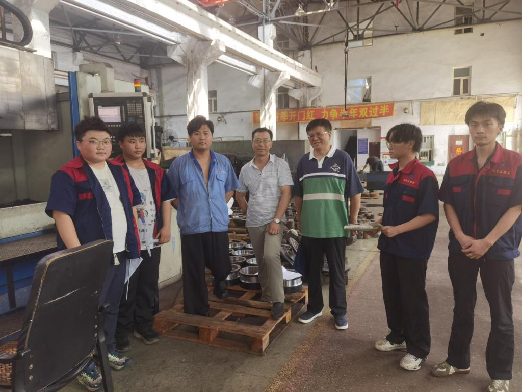 在该实习基地数控车间检查实习时,杨老师首先询问了有多少同学到岗位实习,没有到岗实习的原因;针对实习基地每天的考勤方法和途径做了深入的了解,并对手写签到和实习岗位为背景拍照上传学习通双签到的管理方法给予了肯定;检查实习教学任务时,杨老师查阅了学生的实习手册,在了解到,指导老师在学习通日作业基础上,每天学生要在手册上绘制一张正在生产的图纸和抄写相应工艺并与在场零件实物印证的实习内容,给予了进一步要求和指导,鼓励身边的同学们要随时请教工人师傅,观察每个工序加工方法,对在场实习指导教师能每天坚持巡视和随时指导、批阅当天图纸和工艺的做法给予了充分的肯定。