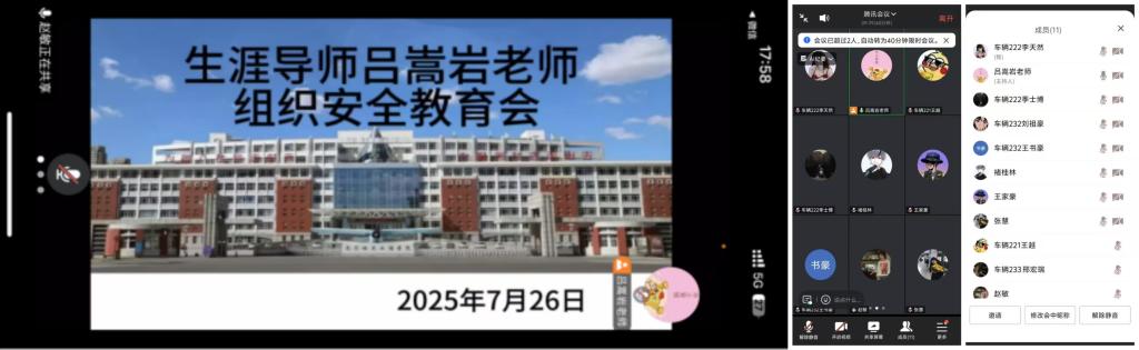 2025年7月26日,生涯导师吕嵩岩组织开展安全教育会,聚焦实习安全,覆盖多方面内容,确保生涯学生全员参与、充分知晓。