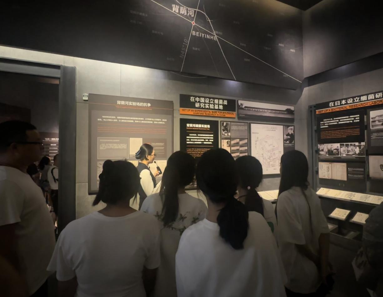 铭记历史创伤,筑牢和平信仰。清晨的哈尔滨阴雨绵绵,仿佛在为那段沉重的历史低吟。上午11时,三下乡团队师生怀着肃穆的心情走进侵华日军第731部队罪证陈列馆。这座位于哈尔滨市平房区的纪念馆,是二战期间日本法西斯进行细菌战研究的核心基地,也是人类历史上规模最大、最残忍的生物武器实验场遗址。