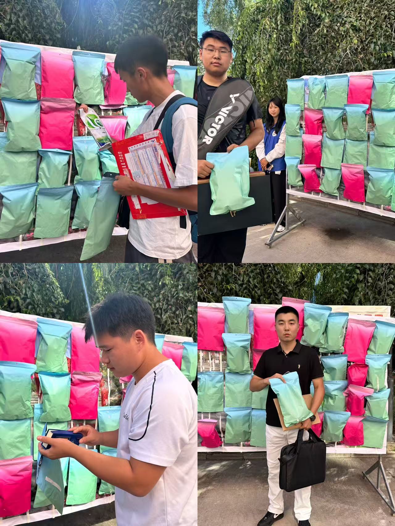 在五、九公寓的新生报到处,志愿者们引导新生完成登记,新生可在公寓门口抽取盲袋。盲袋内的物品经过精心筛选,涵盖洗衣液、抽取式洗脸巾、卷纸等生活必需品,精准匹配新生入住初期的需求。更让新生们感动的是同步发放的专属Q版冰箱贴。这些冰箱贴以新生本人的入学登记照为原型设计,通过卡通化处理呈现出活泼可爱的形象,下面还印有学生的姓名以及鼓励的话。