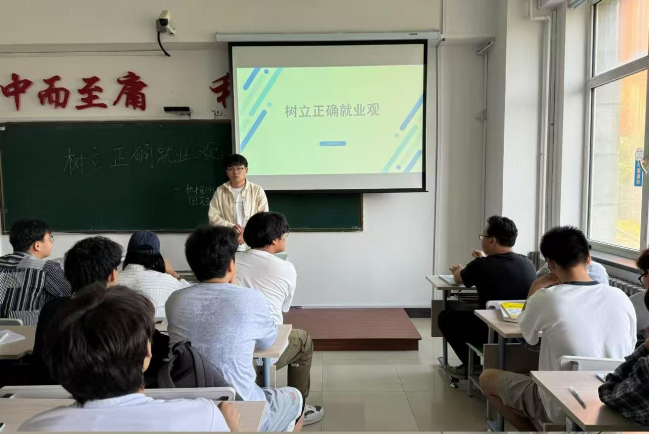 会议伊始,团支书户国朝同学表示树立正确就业观,首先要摒弃“好高骛远”与“眼高手低”的错误倾向。部分同学可能对职业抱有不切实际的幻想,非“高薪高职”不选,或是轻视基层岗位、实践机会。然而,职业本无高低贵贱之分,每一个岗位都能绽放价值,基层与一线恰恰是青年磨砺本领、积累经验的沃土。其次,要将个人理想与国家需求紧密结合。时代赋予新青年的,不仅是个人发展的机遇,更有沉甸甸的责任。主动向国家战略急需的领域、向人民群众需要的岗位靠拢,使个人的职业成长便有了更深厚的土壤,青春也能在与国家同频共振中焕发更绚丽的光彩。