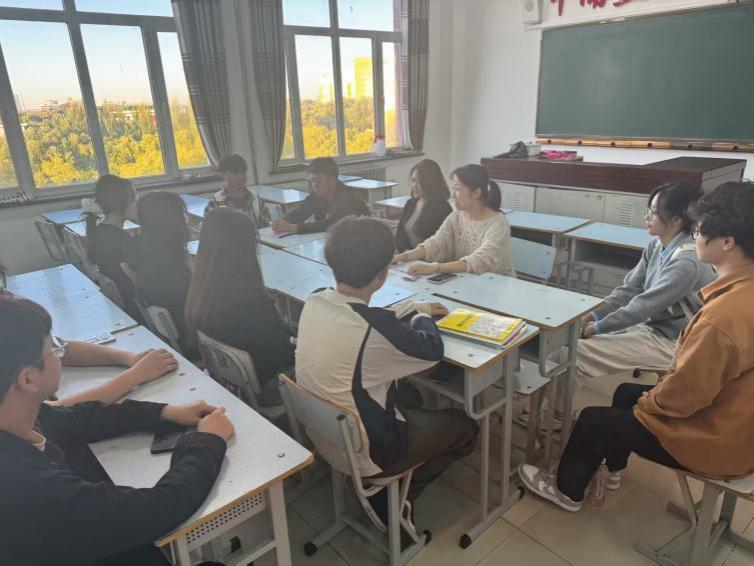 会议伊始,两位新生代表做了自我介绍,以尽快融入生涯学生群体。大三学生赵翌萌同学结合大学的体验,分享了实用且生动的大学生活建议,引起在场同学的广泛共鸣。随后,冯洁老师为同学们详细解读了贯穿大学四年的“成长路线图”:大一阶段,重点在于“适应与尝试”,积极熟悉校园规范、融入集体氛围,可适当参与学生工作与社会实践,初步培养综合能力;大二、大三阶段,重心转为“学业与提升”,需重视课程绩点、打好专业基础,积极投身学科竞赛、技能证书考取等活动,不断提升自身竞争力;大四阶段,应着眼于“抉择与行动”,明确未来发展方向,如考研、就业或创业,并提前做好各项准备,实现从校园到社会的顺畅过渡。