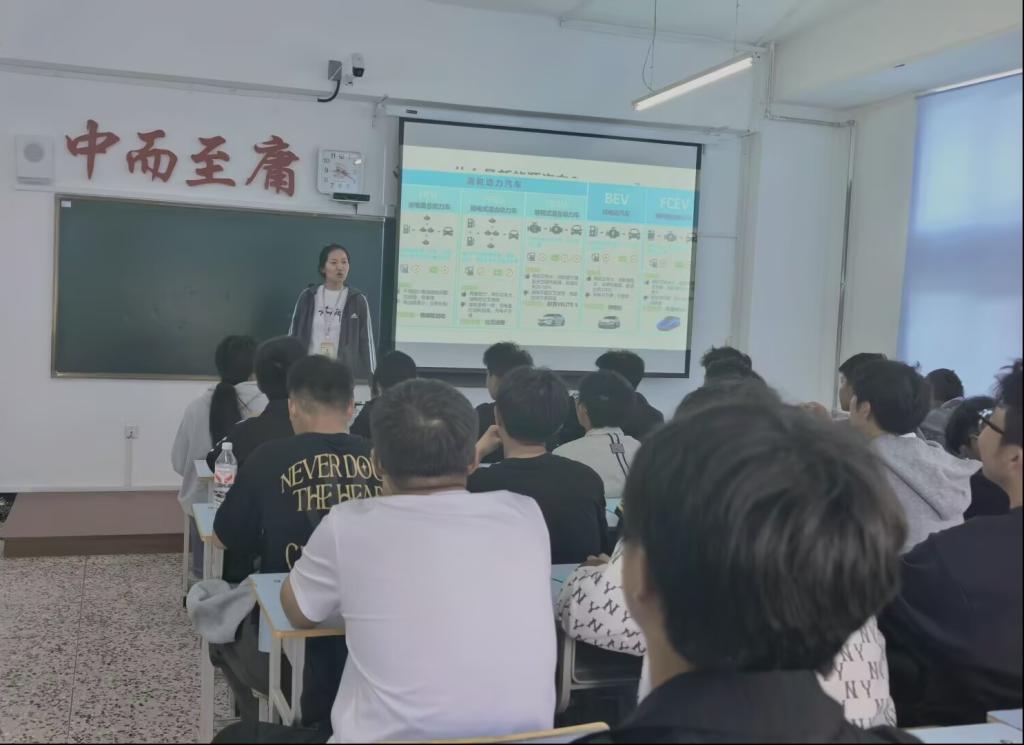 课程伊始,专业负责人张超群以一段动态数据切入,直观呈现全球新能源汽车销量从2015年的不足百万辆,到2024年突破1500万辆的爆发式增长,瞬间点燃了新生的兴趣。“新能源汽车不是‘电动化的传统车’,而是集机械、电子、软件、能源于一体的智能移动终端。”结合我国“双碳”战略与黑龙江省新能源汽车产业布局,详细解读了专业的定位:培养具备“机械+电控+电池+智能”跨学科能力,能胜任新能源汽车设计、制造、检测、运维等岗位的应用型人才。
