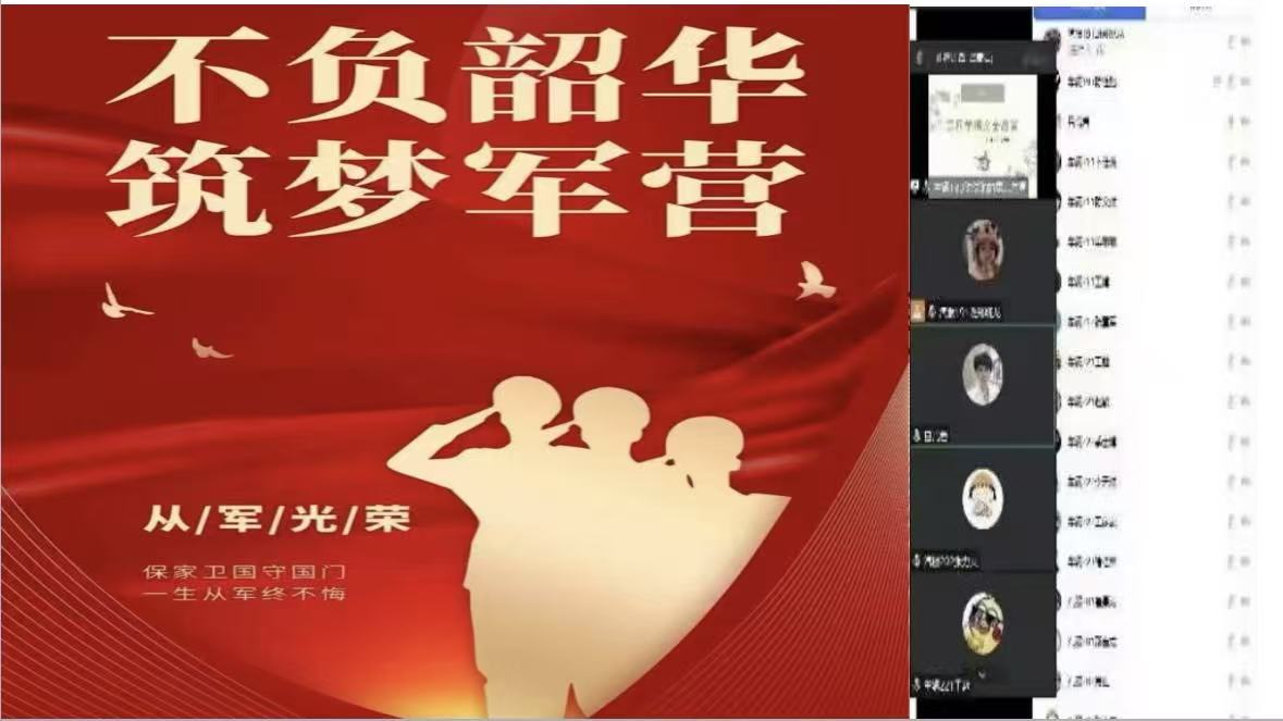 筑梦军营锤炼青春本色,投身军旅担当时代重任。5月16日,生涯老师吕嵩岩老师主持召开了以"不负韶华,筑梦军营"为主题的征兵宣讲会,系统总结了近年来学校征兵工作的积极成效。她指出,一批批优秀学子在军营中淬火成钢,既为强军事业贡献智慧力量,也在迷彩方阵里谱写了绚丽的青春诗篇。