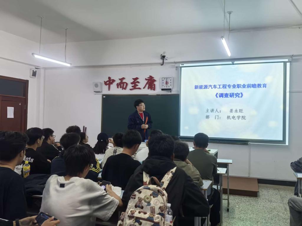 9月16日,新能源汽车工程专业为25级新入学学生举办职业前瞻教育活动。本次活动由专业教师姜永旺主讲,以调查研究为主题,旨在今后帮助学生精准把握行业发展脉搏,科学规划大学生涯与职业路径。