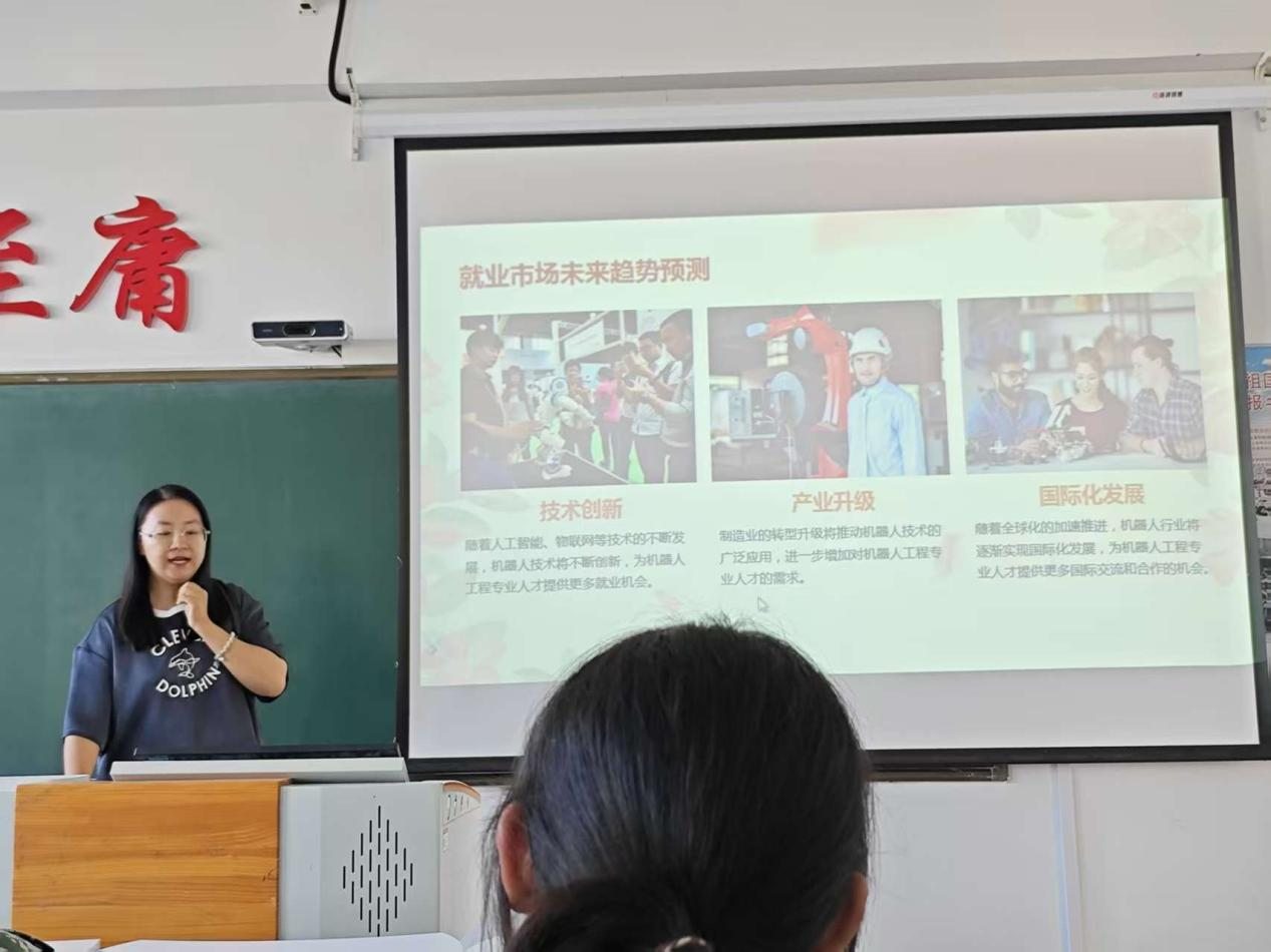 课程伊始,浦兰娟以互动提问的方式打破传统课堂的沉闷氛围,一句“你眼中的机器人工程专业是什么?”瞬间点燃了新生们的思考热情。学生们纷纷结合自身认知踊跃发言,在轻松的交流中,师生距离被迅速拉近,也为后续课程内容的顺利推进营造了活跃且专注的课堂氛围。课堂上,25级新生展现出对专业知识的强烈渴望与积极的学习态度:他们不仅全程专注聆听老师的讲解,还围绕专业学习的核心痛点主动提问,问题覆盖“如何平衡专业课学习与兴趣拓展”“专业相关证书的备考时间规划”“参与专业竞赛的渠道与准备方法”等。面对学生们的疑问,浦兰娟耐心细致地逐一解答,她结合往届优秀学长学姐的真实学习案例,分享了实用的时间管理技巧、备考经验与竞赛备赛策略,为新生提供了可落地的学习指引;同时,她还特别强调了班级学风建设的重要意义,鼓励学生们在学习中互帮互助、取长补短,共同打造积极向上、比学赶超的集体学习环境,助力彼此共同成长。此外,课程中还深入解读了机器人行业的发展前景:从全球化加速推进下专业人才将获得的国际交流合作机遇,到制造业转型升级过程中对机器人工程专业人才需求的持续增长,再到人工智能、物联网等前沿技术创新为专业领域开辟的更多就业空间,一系列行业动态的分享让新生们对未来专业发展路径有了更清晰、更全面的认知。