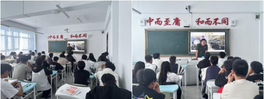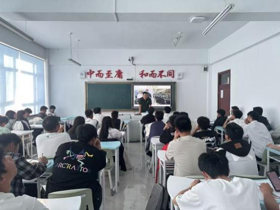 9月24日,在袁双宏老师的组织下,齐齐哈尔理想汽车销售有限公司总经理耿海涛走进校园,在图113为新能源251班全体新生开展“匠心筑梦,技创未来”主题宣讲,以行业视角为新生带来职业启蒙,并由袁老师辅助讲解。