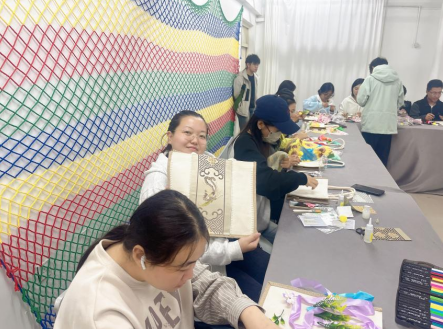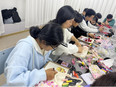 在创作环节,同学们充分发挥自己的想象力和创造力,将心中的灵感倾注于手提袋之上。有的同学以传统水墨画为灵感,用画笔在布料上勾勒出山水意境;有的同学结合非遗剪纸艺术,精心剪裁出精美的图案并缝制在手提袋上;还有的同学将现代时尚元素与传统色彩搭配相结合,设计出独具个性的作品。整个创作过程中,同学们全神贯注,相互交流探讨,现场充满了浓厚的艺术氛围。
