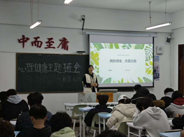 机器人工程专业辅导员周胜男于10月13日18:00在图书馆708为机器人251班全体学生开展了一场以“拥抱情绪,关爱自我”为主题的心理健康主题班会,此次会议旨在普及心理健康知识,提升学生心理调适能力,营造积极健康的校园氛围。