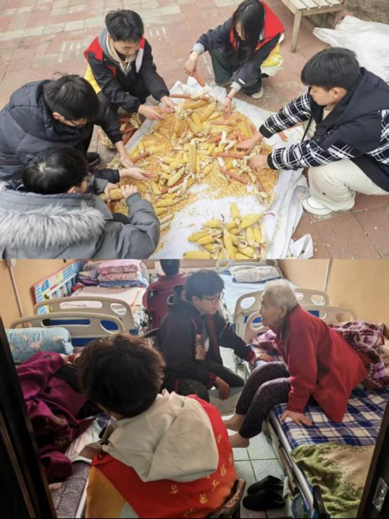 户外的空地上,一组志愿者围坐成圈,分工协作:有的负责剥玉米皮,双手麻利地撕掉层层外皮,露出饱满的玉米粒;有的手持脱粒器,小心翼翼地将玉米粒从棒芯上分离;还有的负责将脱好的玉米粒装进布袋,分类整理。秋日的阳光虽不灼热,一边劳动一边交流着剥玉米的技巧。在大家的共同努力下,原本堆成小山的玉米很快被处理完毕,既为老人们减轻了劳作负担,也让志愿者们真切体会到了农耕的辛劳与收获的喜悦。